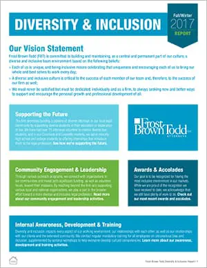 Our DEIB reports (formerly IDEB) spotlight some of our diverse lawyers, report on events to support the growth of diversity in the profession, and note some of the recognition that we have earned, individually and as a firm, for our efforts in this area. We know that becoming a fully diverse, equitable and inclusive firm is a journey, but we are committed to that journey because we truly believe that we will be a better firm, and provide better client service, as a result.