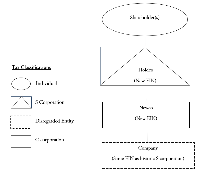 If the Company is an LLC taxed as an S corporation, the steps outlined above would be adjusted to reflect the state-law entity difference. There may be additional owners of Newco added as a part of the restructuring (e.g., investors or Company employees).