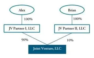 Now, let’s assume all the facts are the same except now the JV Partners have entered into a Joint Venture Agreement to govern the operations of Joint Venture, LLC. The JV Agreement includes a distribution waterfall which states that the future profits of the Joint Venture are to be distributed 50% to JV Partner I and 50% JV Partner II. In this scenario, both Alex and Brian would each have a 50% interest in the future profits of the Joint Venture. This interest meets the 25% threshold therefore both Alex and Brian would be Beneficial Owners of Joint Venture, LLC.