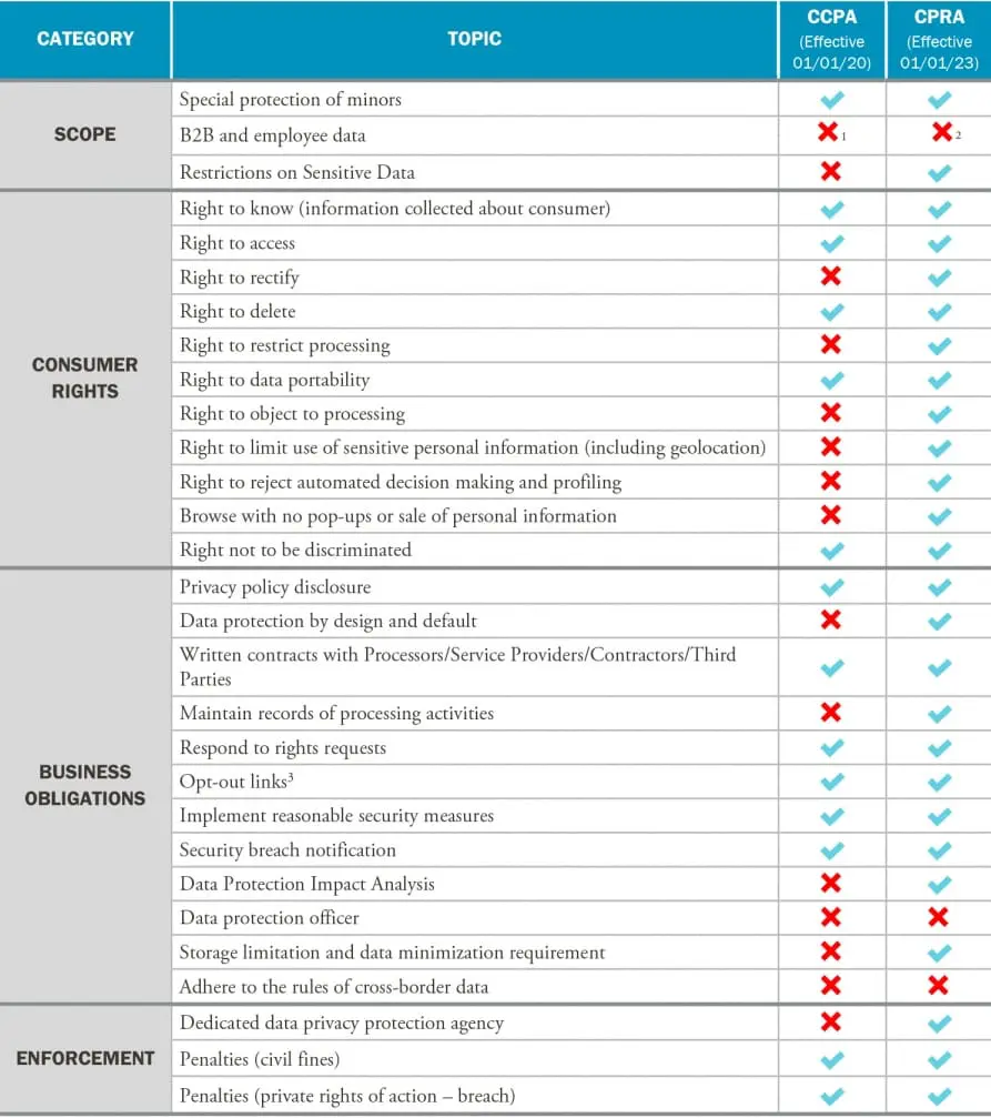 CCPA v. CPRA Comparison Chart