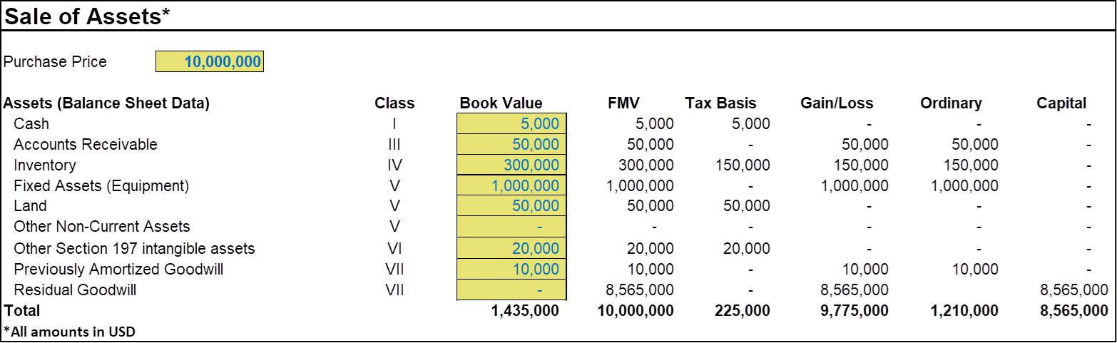 Further note, that if a 338(h)(10) election is made, the “Sale of Assets” model is more complicated.