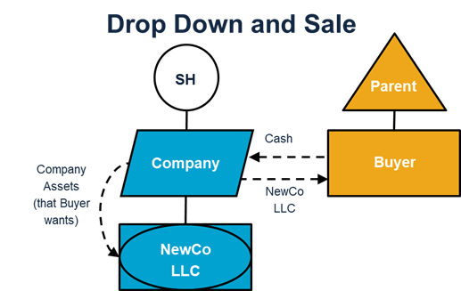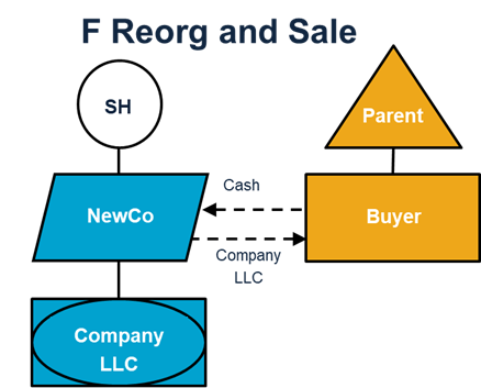 One added benefit of the F Reorg. or drop-down structures above is that they allow for the selling company to retain unwanted assets. With an F Reorg., because the newly created LLC is a disregarded entity, assets that the Buyer has no interest in can be distributed up to NewCo with no tax consequences. Such a structure may also avoid bulk-sales notifications, depending on the state law of whether or not the sale of membership interests creates a bulk sale filing requirement, versus a true asset sale and acquisition.