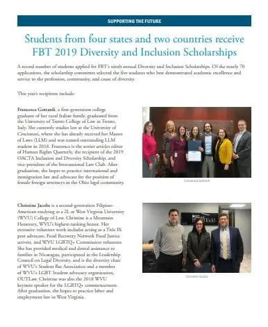 In this report, we spotlight some of our diverse lawyers, report on events to support the growth of diversity in the profession, and note some of the recognition that we have earned, individually and as a firm, for our efforts in this area.